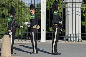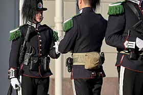 Gardistene som står vakt utenfor Slottet merker også