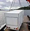 Gressholmen kiosk fraktes til Gressholmen i fjor. Foto: Tony Sømarken