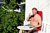 Hort Bentele (53) eier en av kolonihyttene og forteller at de verken renser vannet de slipper ut eller tenker noe særlig på såpebruken.