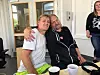 To tidligere brukere ved Prindsen mottakssenter. Fotoet er tatt under dugnad for stedet. I bakgrunnen står dagens institusjonssjef, Mari Kjølberg, som fortsatt jobber i Oslo kommunes velferdsetaten. Foto: Vegard Velle