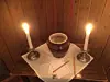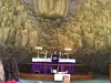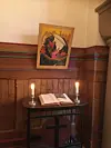 Regnbuetemaet er forresten en liten gjenganger i kirken denne dagen. Du finner regnbuefarger på bønnetreet du kan knytte bønnesnorer på, og barna i koret som synger denne dagen, tenner regnbuefargede lys foran alteret. Et lys for alle merkedagene i fasten. Koret synger forresten også vakkert for oss denne dagen. De er flinke og har trøkk selv om de ikke er så mange.