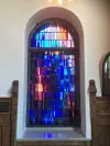 Grorud kirke er en vakker skatt. Så vakker at man knapt får plass til å snakke om glassmaleriene som henger over meg på begge sider under gudstjenesten og også sender regnbuefarger inn til oss. Kirken bruker farger for å markere sine ulike tider.