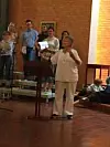 Også i Holmlia kirke fikk vi servert brød, eller i det minste et glutenfritt oblat. Vi var mange der inne i kirken, men heldigvis var vi ikke 5000, så de slapp å gjenta mirakelet. De hadde med nok brød til oss alle. Foto: Kjersti Opstad