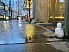 Noen klarte å samle sammen nok snø til å lage en liten snømann ved siden av en sigarettsneip i Bogstadveien julaften, men hvit jul ble det ikke for de fleste osloborgere. Nyttårsaften ser imidlertid ut til å bli hvit og snøfylt i Oslo.Foto: Ingri Valen Egeland