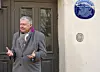 Generalsekretær i Oslo Byes Vel, Ole Rikard Høisæther, ønsker velkommen til avduking av blått skilt i Bolteløkka allé 10.Foto: Ingeborg Hegtun / Oslo byes vel