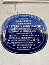 Kristian Birkeland og Sam Eyde hedret med Oslo Byes Vels Blå skilt.