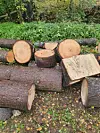 Claes Fries Thofte, som har skrevet debattinnlegget, fikk tilbud om å bruke disse stammene til ved da han spurte hvorfor trær ble kuttet ved Holmendammen.Foto: Privat
