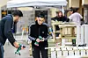 Møbler og plantekasser ble nøye målt og satt i stand i samarbeid med de kreative og erfarne byggerne fra Makers Hub. Her står Sadia Mubiru, Jack Hughes (Makers'Hub), Tharchanna Sasikaran sammen og bygger.Foto: Julie Hrnčířová