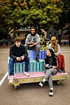Julian Brito Benestad, Ali Abdirashid Muhumud, Josra Talhioui og Sumaya Ali Isse er svært fornøyd med de egensnekrede møblene til skolegården.Foto: Julie Hrnčířová