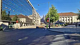 Avstengte Hammersborggata ved Hammersborgtunnelen.Foto: Christian Boger