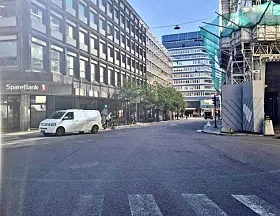 Stille i krysset Hammersborggata/Calmeyers gate.Foto: Christian Boger
