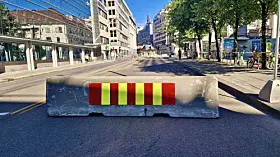 Sperrebukker er nå å møte flere steder, blant annet her i Hammersborggata.Foto: Christian Boger
