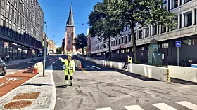 Sperring på Ring 1 ved Universitetsgata.Foto: Christian Boger