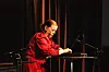 Hanne T. Asheim derimot, leverer noe helt annet og friskt der hun sitter ved sitt sorte flygel, i rød og blinkende aftenkjole. Den historiske salen er fullsatt og meget kvinnsterk.