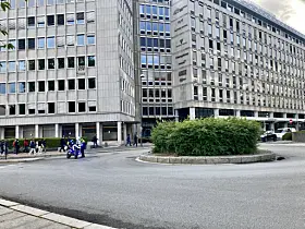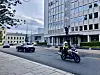 politimotorsykkel i rundkjøringen ved Haakon VIIs gate et steinkast unna Oslo