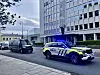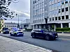 blålys og flere politikjøretøy.