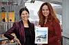Klimaetatens direktør, Heidi Sørensen, overrekker utkast til ny klimastrategi for byen til byråd Lan Marie Berg. Foto Klimaetaten