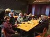 Flere ved bordet var med på å samle inn penger til ny kirke på Stovner, og var med på byggingen. Foto: Kjersti Opstad