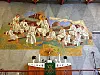 Veggdekorasjon i Tonsen kirke som symboliserer viktigheten av å bære livets byrder sammen. Skipet du ser bakerst henger i realiteten ned fra kirketaket midt i kirken. Ulike skipsmodeller finnes i mange norske kirker. De kalles "votivskip" og symboliserer kirkelydens ferd mot evigheten. Foto: Kjersti Opstad