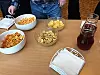 Det var en folkelig meny på kirkekaffe i Tonsen kirke. I tillegg til kaffen kunne man både finne rød saft, småkaker og potetgull. Foto: Kjersti Opstad
