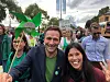 Lar Marie Nguyen Berg og Arild Hermstad, nasjonal talsperson for MDG, under klimamarsj i Stockholm. Foto: Privat