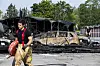 Skader for enorme summer gikk opp i røyk og flammer da både biler og garasjeanlegg i Haugerudveien brant søndag morgen. Foto: Berit Roald / NTB scanpix