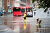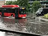 Store mengder vann rant inn i busser som forsøkte å ta seg over vannmassene i Uelands gate. Foto: Terje Pedersen / NTB scanpix