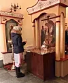 Ber: En ukrainsk jente tenner lys og ber under gudstjenesten. Foto: Yasmin Sfrintzeris