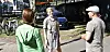 Oslo SVs stortingskandidat Kari Elisabeth Kaski mener det må bli Statens oppgave å finansiere helsesentrene for papirløse migranter. Her i samtale med «Ramona» og Nazir ved senteret for papirløse i Oslo.Foto: Christian Boger
