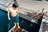 Angelina Tjernsli kaster seg ut i vannet.Foto: Thomas Fure / NTB