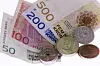 Det ikoniske ormehodet har prydet mangt opp gjennom, både i norsk og kommersiell sammenheng. Den er også å finne på den norske 20-kroningen, her sammen med de gamle, norske sedlene.Foto: Cornelius Poppe / NTB