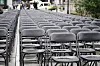 Kjeglene på perrongen på Jernbanetorget var satt opp for at flisene skulle få tørke i fred.Foto: Oda Guleng