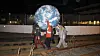 Extinction Rebellion med en jordklode på vei for å blokkere et tog med flybensin på Sjursøya.Foto: Extinction Rebellion Norge