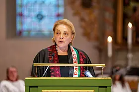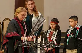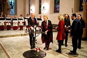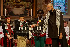 Det var i anledning FNs internasjonale solidaritetsdag for det palestinske folk at Oslo domkirke hadde invitert til en solidaritetsmarkering. Både kong Harald og kronprins Haakon var til stede.