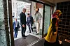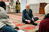 Statsminister Jonas Gahr Støre (Ap) tar av seg skoene før besøket i Rabita-moskéen.Foto: Javad Parsa / NTB