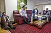 Familie fra Gaza ville fortelle statsministeren hvordan de opplever situasjonen i Midtøsten. Fra venstre: Nor Alzayegh, Salame Alzayegh, Ezzedeen Alzayegh, Wafaa Alzayegh, Muhammed Alzayegh og Hadeel Alzayegh.Foto: Javad Parsa / NTB