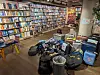 Sekker og bager måtte flyttes lenger inn i bokhandelen.Foto: Petter Terning / VårtOslo