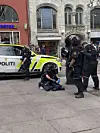 Politiet fikk først melding om en ordensforstyrrelse inne på Glassmagasinet, hvorav en person muligens skulle være i besittelse av et våpen. Det er selvfølgelig en melding vi tar svært seriøst. Det er årsaken til at vi er så mange ressurser per nå, sier innsatsleder Tonje Brandrud.