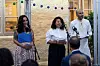 Grunnleggerne av Salam, fra venstre Begard Reza, Hasti Hamidi og Thee Yezen Al-Obaide. Med ryggen til sitter kronprins Haakon. Foto: Olav Helland