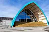 I stedet for stål er hovedkonstruksjonen i hallrommet bygd opp av limtrebuer som er boltet sammen. Stålbassenget kan kappes opp, og sveises sammen på nytt. Fundamentene til bassenget er prefabrikkerte og ikke festet til grunnen. Garderober og tekniske rom er bygd opp av containere, som er boltet sammen på byggeplass.