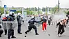 Mens politiet brukte tåregass kastet unge motdemonstranter stein og andre gjenstander.Foto: André Kjernsli