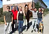 Søndag er det derbydag og eksamen for hesten Corazon De Leon. Fra venstre deleierne August og Marek Rzewuski, trener Silja Støren, Corazon De Leon, jockey Manuel Martinez, jovkeylærling Mathilde Dupuy og Mathildes hund Jake Foto: Anders Høilund
