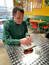 Han tester ut de nye punktskriftmenyene til Mike's Corner, og sier at dette er et langt skritt på den riktige veien. Når det er aktører som velger å gjøre dette, blir restaurantbesøk mye lettere.