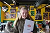 Amalie (23) er selv svaksynt, og er svært fornøyd med at søsteren hennes på Mike's Corner har tatt initiativ til å introdusere menyer med punktskrift.Foto: Petter Terning