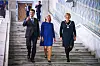 EU-kommissær for krisehåndtering Janez Lenarcic og utenriksminister Anniken Huitfeldt ble tatt imot av ordfører Marianne Borgen under humanitært møte for Ukraina i Oslo Rådhus.Foto: Ole Berg-Rusten / NTB