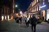 Politiet har ikke noe spesielt å melde etter første helgenatt med nye, utvidete skjenke- og åpningstider. Her er folk ute og går langs med Karl Johans gate.Foto: Annika Byrde / NTB