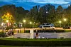 Eidsvolls plass natt til lørdag. Oslo har åpent etter midnatt og en mann spiller musikk foran Stortinget. Foto: Annika Byrde / NTB