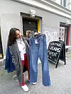 Bukser koster gjerne 600 eller 700 kroner i vintagebutikkene på Grünerløkka. Omtrent det samme som et nytt plagg, forteller Maria Hugues.Foto: Maria Hugues