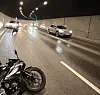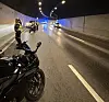 en motorsykkel med to personer på hadde sklidd i svingen i Vålerengtunnelen i retning