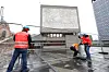 Statsbygg setter opp byggegjerde rundt Y-blokken i regjeringskvartalet mandag morgen. Foto: Gorm Kallestad / NTB scanpix